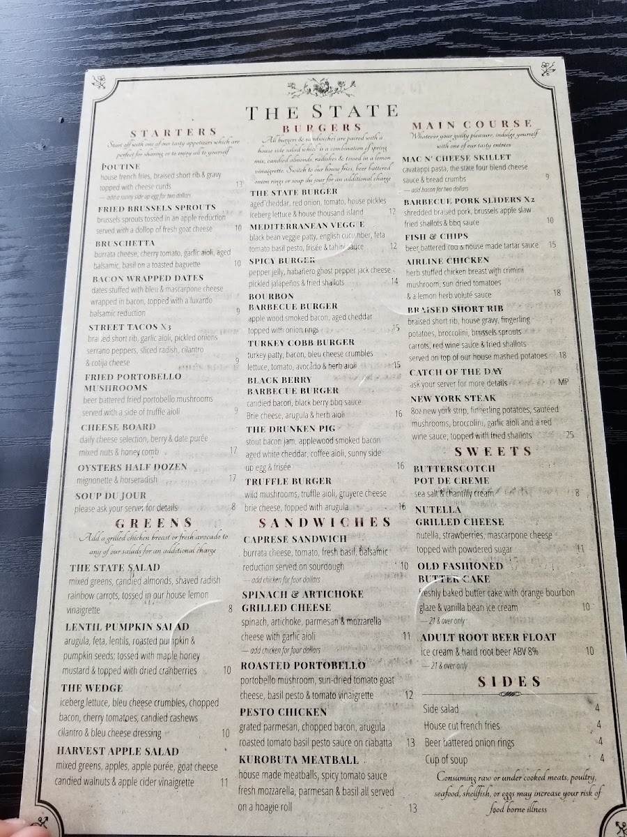 The gastropub ambiance at The State is another reason to visit. Reviewers frequently praise the fun, bustling vibe, particularly during the evening hours when the place fills up with laughter and lively conversation. The spacious outdoor patio is equipped with heaters, making it an ideal spot for a cozy meal even on cooler days. The décor blends modern sensibilities with a hint of industrial charm, creating an environment that feels upscale yet approachable.